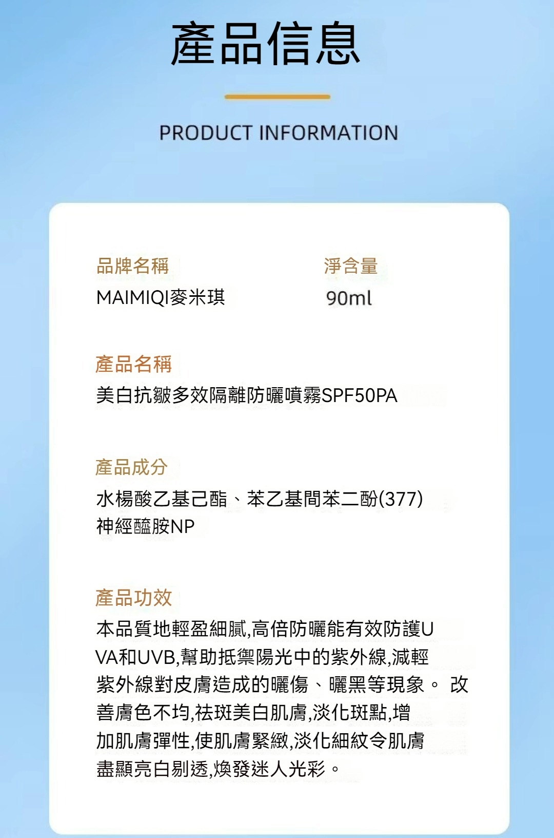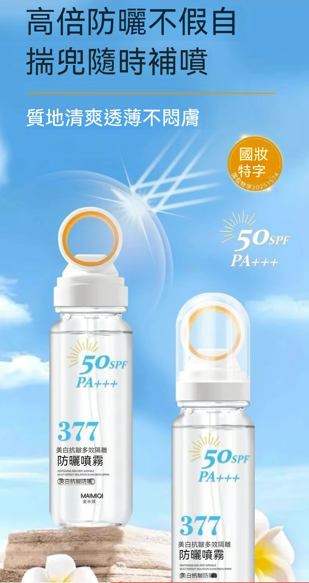 美白抗皺多效隔離防曬噴霧 一瓶售價新台幣250元