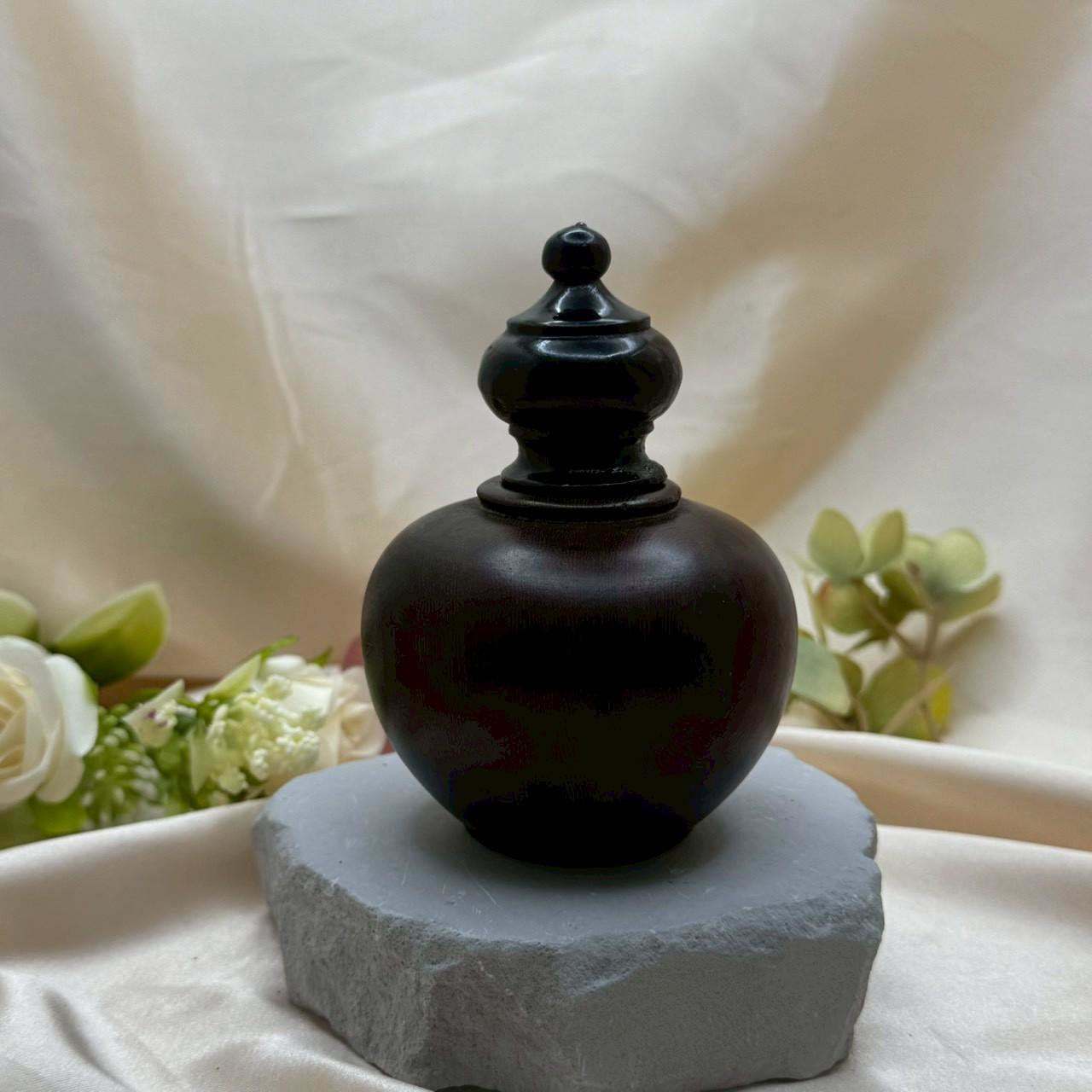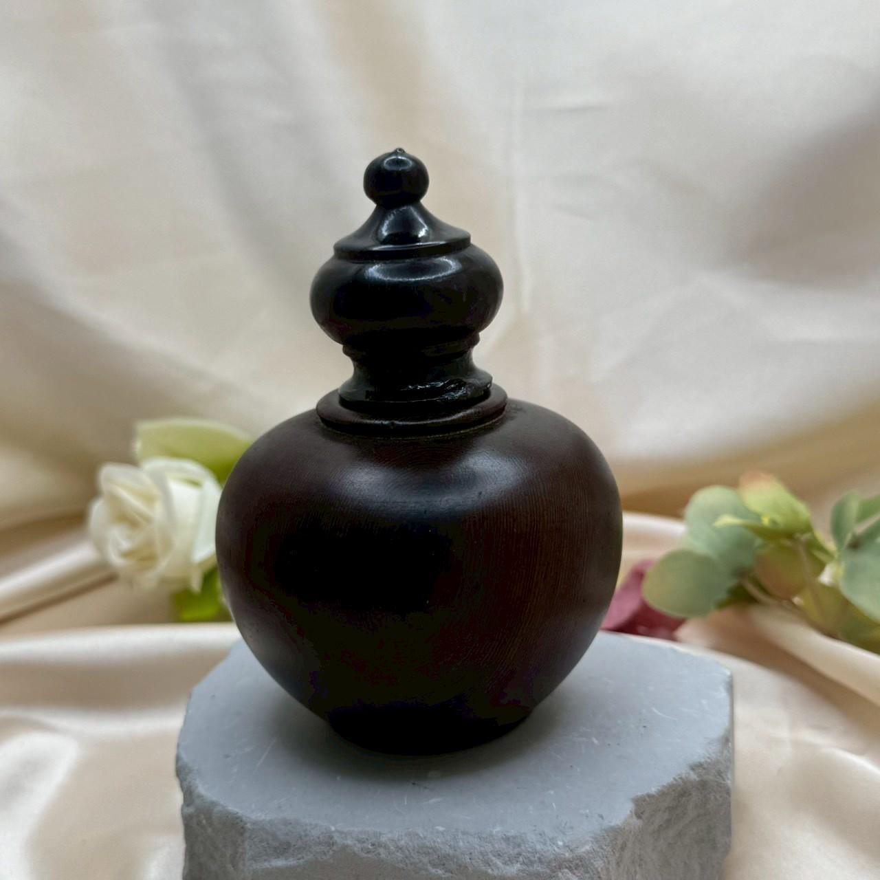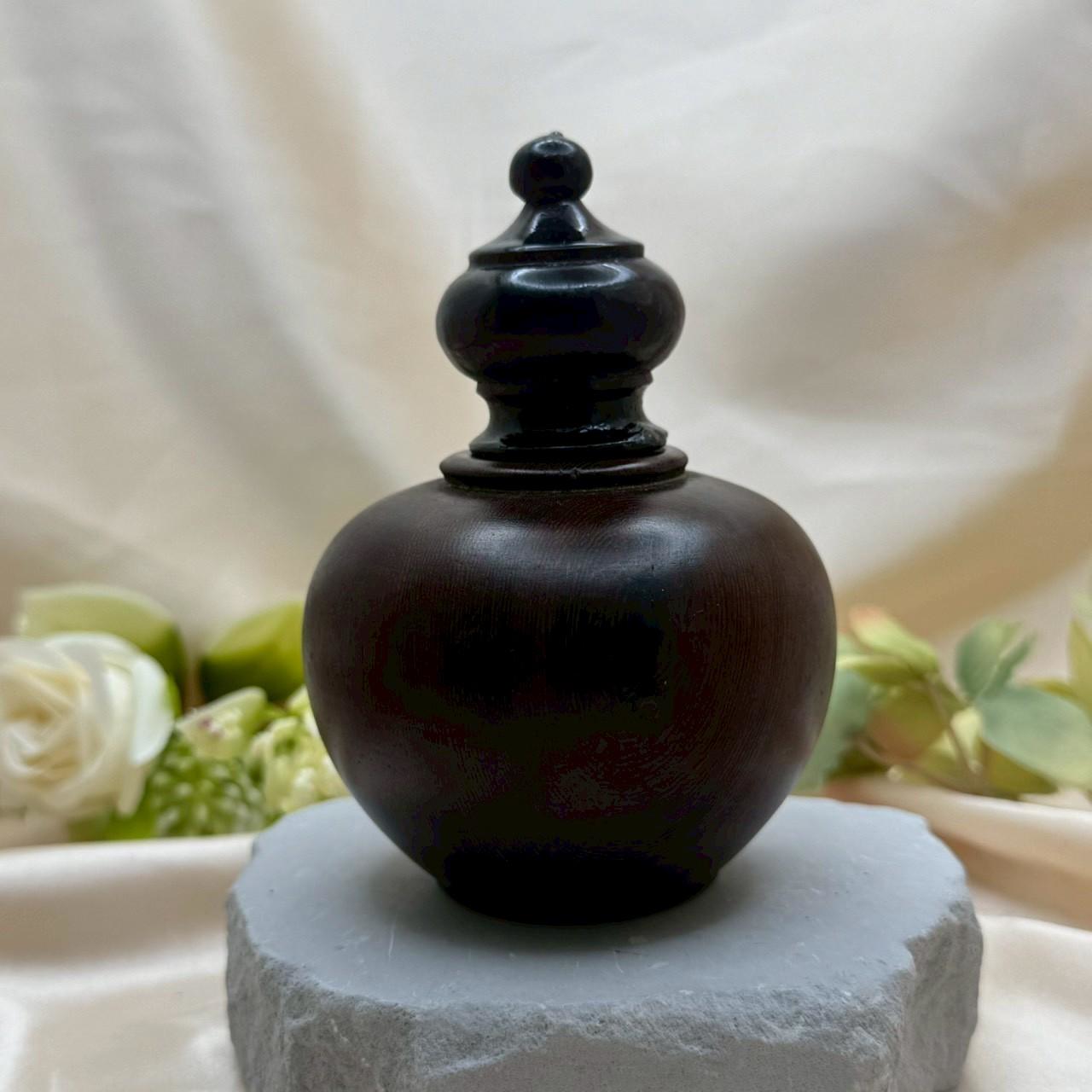 沉穩之美,來自細節的堆疊。 這款木質禪風香器擺件,以圓潤飽滿的瓶身比例,搭配層層收束的蓋頂設計,展現東方古典工藝的平衡與秩序感。整體線條簡潔流暢,比例和諧,散發出內斂而高雅的氣質。