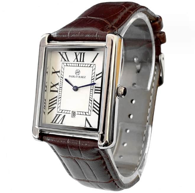 PABLO-RAEZ坦克系列經典羅馬刻度高端方形男女真皮手腕錶,日期情侶錶,一對售價新台幣3280元