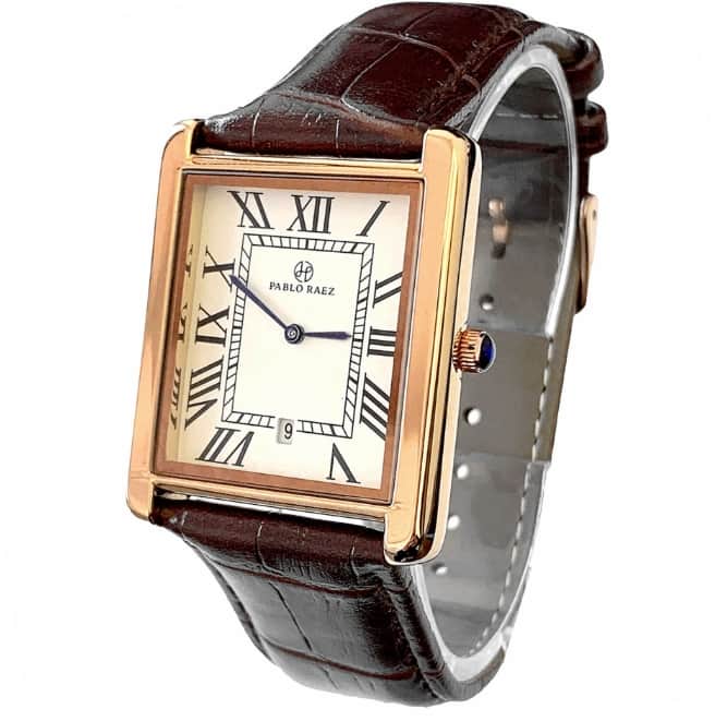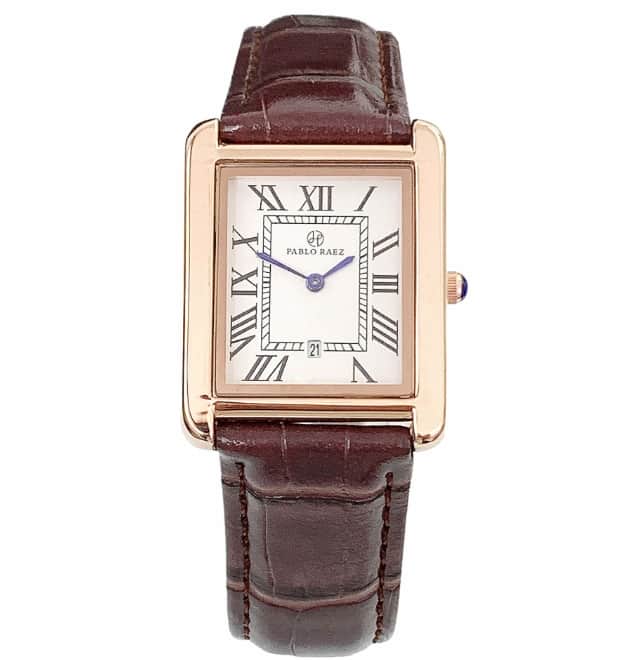 PABLO-RAEZ坦克系列經典羅馬刻度高端方形男女真皮手腕錶,日期情侶錶,一對售價新台幣3280元